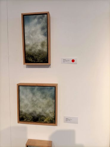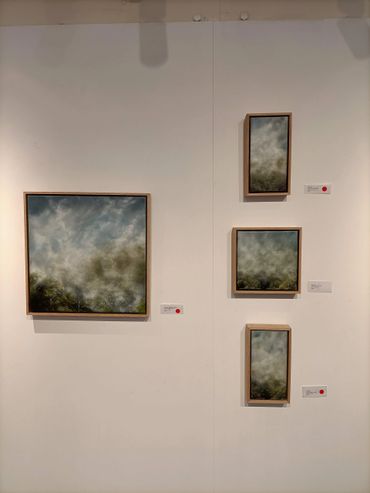 I predominantly work in oil, and occasionally pastel and watercolor, for their abilities to blend. I find this works for my practice as I can keep coming back, working and developing my pieces. Occasionally a piece will come to life alla prima, and be complete, but usually I will have several pieces on the go at once in various stages of drying, waiting for the next layer to emerge. Landscapes are layers and I like to build the story over time, like nature herself. My muted palette is intentional and the idea of developing, rolling and blending just like weather changes and strengths reflects my approach to painting in general and is also reflected in one of my favourite quotes by Picasso, “I begin with an idea and then it becomes something else.”